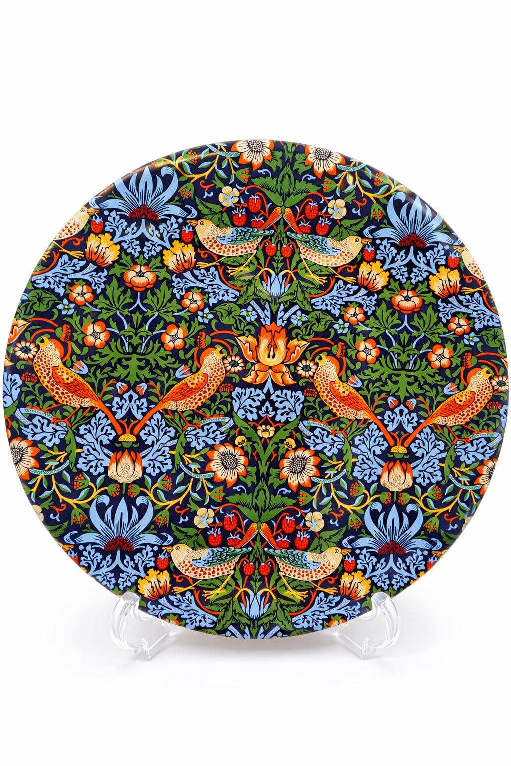 ウィリアム・モリスの世界観が魅力的な鳥と草花のモチーフが美しく広がる装飾的なプレート缶。